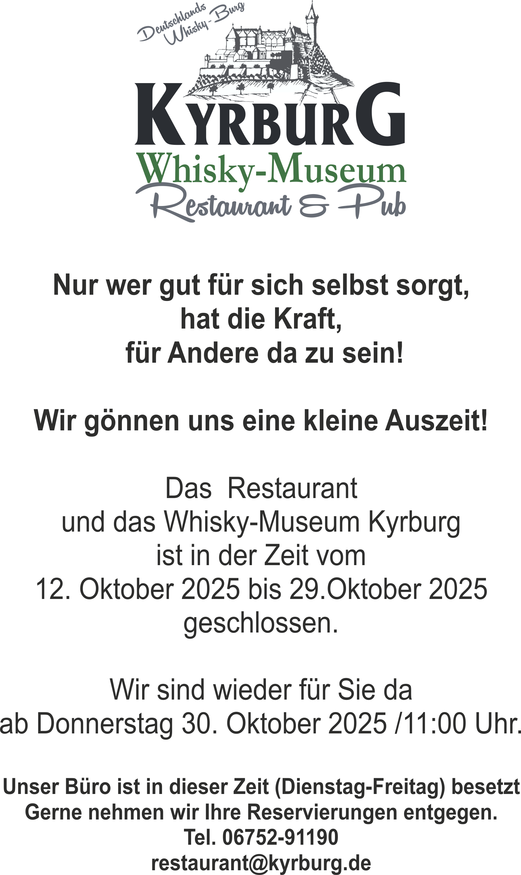 Bitte haben Sie Verständnis, eine Nichtteilnahme beim Whisky-Tasting ohne Absage wird in Rechnung gestellt.
