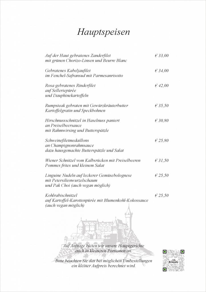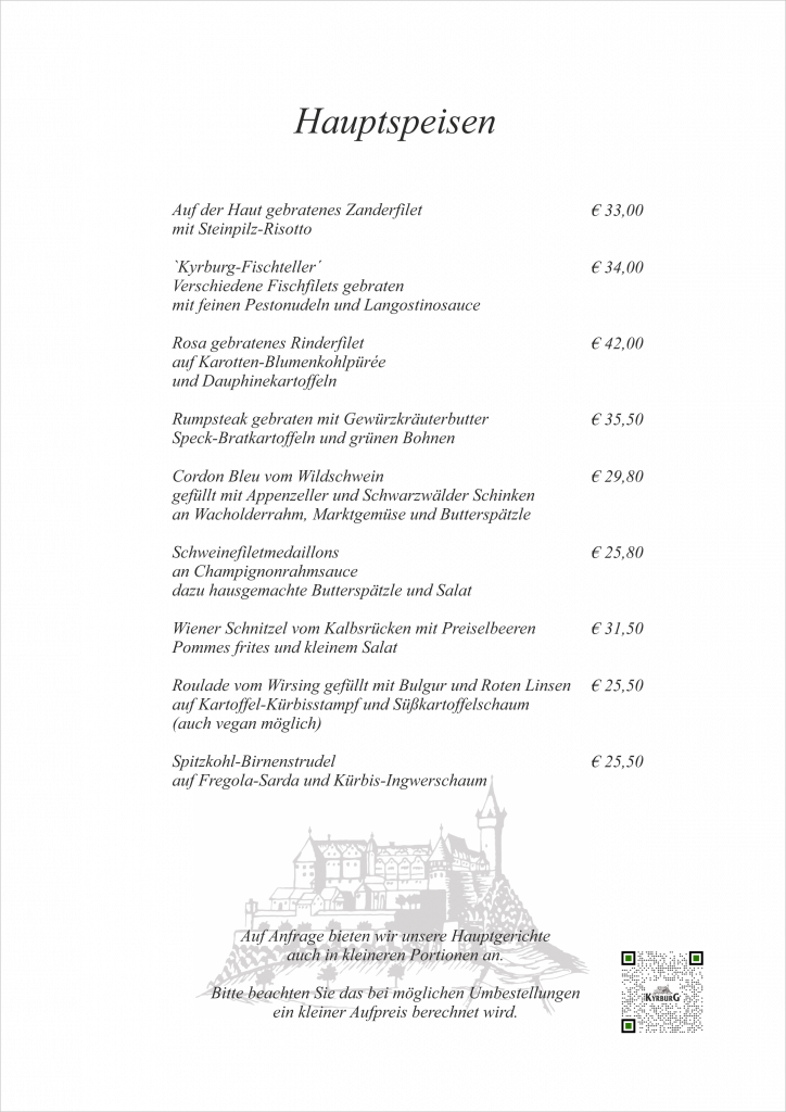 Sollten Sie bestimmte Speisen nicht mögen, oder bevorzugen Sie die vegetarische/vegane Küche – geben Sie dies bitte bereits bei Ihrer Reservierung an.